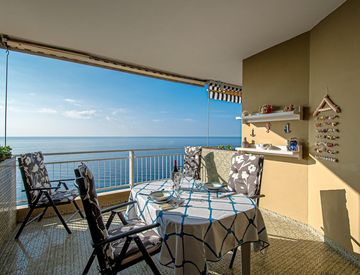 La favolosa vista dal terrazzo regala bellissimi scenari e rende molto piacevole mangiare all'aperto durante la maggior parte dell'anno nel clima perfetto di Ospedaletti.