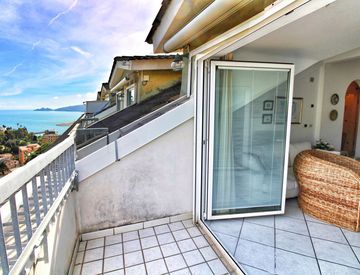 Soleggiato e luminoso, con caratteristico parziale tetto a mansarda, è un appartamento moderno e con una piacevole vista panoramica sul verde delle colline e l'azzurro del mare.