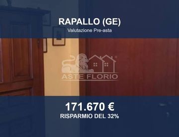 Appartamento in asta a Rapallo (GE) – Corso Giuseppe Assereto 85 (CAP 16035) Appartamento situato nel pieno centro del Comune di Rapallo, in un edificio costruito con struttura portante in cemento armato. L'immobile si trova in una zona ben servita, a circa 250 metri dal mare e dalla stazione ferroviaria. Superficie e distribuzione interna L'appartamento ha una superficie utile netta di 97,35 mq, oltre a 48,20 mq di terrazzi. La composizione interna...