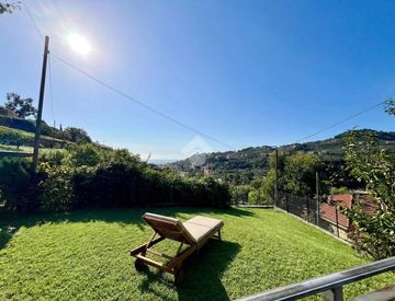 Una scala esterna conduce a una splendida terrazza panoramica con vista aperta sulla valle e scorcio di vista mare, perfetta per pranzi all'aperto e momenti di relax. Completa la proprietà una porzione di giardino privato.