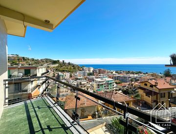 La camera matrimoniale, spaziosa e rifinita con parquet, affaccia anch'essa sul balcone est. Il soggiorno, ampio e luminoso grazie alla grande finestra, ha accesso al balcone esposto a sud, con una magnifica vista mare che dona luce e respiro agli ambienti.