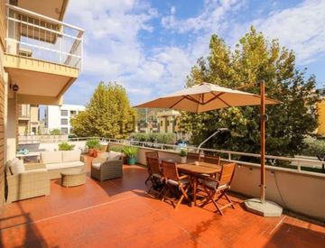 Appartamento pezzo unico per vivibilità, luminosità e distribuzione interna, che gode di una terrazza di grandi dimensioni, in parte coperta che corre intorno all'appartamento, a cui ci si accede dal soggiorno, dalla cucina e da tutte le camere, in pratica si può viverlo in completa privacy.