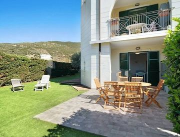 RIF. 360667 - Vendesi Appartamento di 80 m² a Taggia a circa 2 km dal mare (Arma di Taggia), in complesso San Martino di recente costruzione con piscina condominiale, composto da soggiorno/Cucina, due camere, bagno, ampio giardino privato di 280 m² attrezzato con tavolo, sedie, sdraio e tende da sole elettrica.