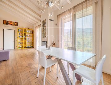 * Un ampio soggiorno con vetrate panoramiche, che regalano una luminosità naturale e una vista spettacolare e un stupendo camino per l'inverno.