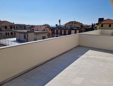 L’ appartamento si trova al secondo piano ed è cosi’ composto: ingresso in zona living con angolo cottura, una camera matrimoniale, una camera singola, due bagni, terrazza di circa 19 mq accessibile dal salone