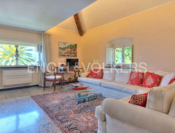 Nel cuore di uno dei contesti più affascinanti di Zoagli, all’interno di un complesso privato immerso nel verde, questo raffinato appartamento occupa l’ultimo piano di una villa storica in stile Liberty.