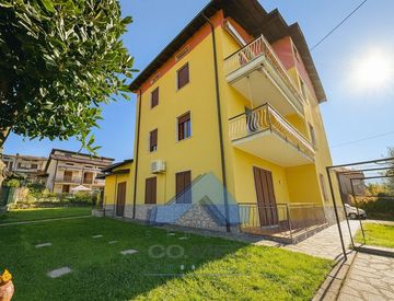 Ingresso, soggiorno, cucina separata abitabile, entrambi i locali con accesso a due balconi che godono dell'ottima vista ed esposizione, disimpegno, due camere matrimoniali e bagno finestrato. Giardino comune al piano terra.