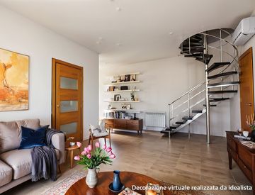 Salendo al quarto piano attraverso una scenografica scala a chiocciola interna, si accede a un secondo livello altrettanto accogliente, dotato anche di ingresso indipendente e composto da un soggiorno con cucina a vista, una camera, un bagno finestrato e un suggestivo terrazzo a tasca di circa 10 mq, perfetto per momenti di convivialità o relax all’aperto.