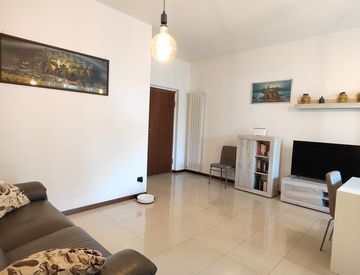 L'appartamento è composto da un ampio soggiorno con terrazzino coperto, comodo e utile ripostiglio, cucinotto arredato finestrato, disimpegno che conduce nella zona notte dove troviamo 2 bagni arredati, camera matrimoniale con balcone e cameretta.