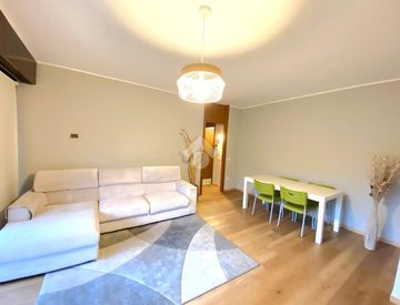 Proponiamo in affitto bilocale di 81mq con loggia fronte parco. L'appartamento, arredato e ristrutturato, si compone di soggiorno con loggia, cucina abitabile con secondo balcone di servizio, camera da letto matrimoniale, bagno finestrato con doccia e un funzionale ripostiglio. A disposizione con l'appartamento una cantina di pertinenza al piano terra.