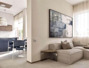 Ingresso con abbassamenti estetici e illuminazione a LED che introduce al soggiorno luminoso; cucina separata con isola affacciata su terrazzo vivibile. Completano la zona notte una camera matrimoniale di ottime dimensioni e un bagno finestrato con doccia in resina; disimpegno con attacco per lavatrice/asciugatrice e ripostiglio.