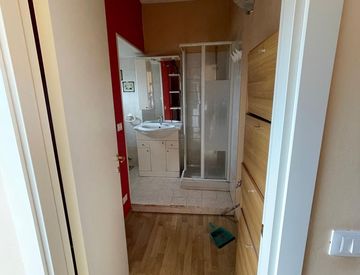 L’appartamento si compone di soggiorno con cucina a vista un bagno, disimpegno, un guardaroba e una camera da letto.