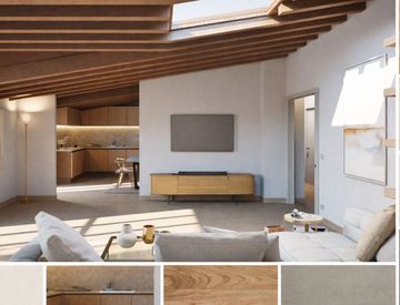 •Rifiniture di pregio: soffitto con travi di legno a vista, pavimento in gres porcellanato con zoccolino in legno, sanitari sospesi, porte bianche laccate.
