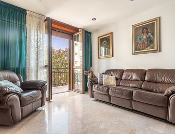 -L’appartamento ha un’ottima pianta razionale che si sviluppa su 130 metri quadrati. Un ampio disimpegno introduce alla zona giorno, dove troviamo a sinistra la cucina abitabile ampia, il salone luminoso con accesso al balcone. A destra il locale studio con accesso al secondo balcone.
