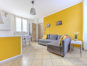 L’ingresso si apre direttamente sul soggiorno con angolo cottura, da cui si accede al disimpegno che conduce all’ampia camera matrimoniale e al bagno. Completa la proprietà un cortile esterno di proprietà, ideale come spazio all’aperto per momenti di relax e utilizzabile anche come posto auto.