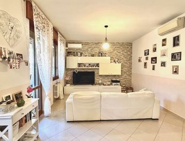 L’abitazione si apre su un luminoso soggiorno con cucina a vista, ambiente accogliente e funzionale. La zona notte è composta da due camere da letto e da un bagno finestrato.