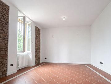 Le finiture sono di pregio, con pavimenti in cotto e pareti in pietra a vista arricchite da inserti in mattoni di cotto antico.