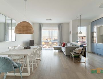 La disposizione è ideale con zona giorno immediatamente adiacente all’ingresso, che si compone di ampio soggiorno con cucina a vista e uscita sul balcone comodo con splendida vista.