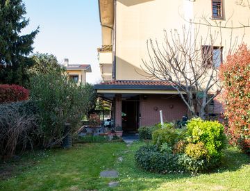 Al primo piano un ampio terrazzo coperto con vista sul giardino piantumato di circa 300 m², completo di gazebo e barbecue e perfetto per le cene estive con numerosi ospiti.