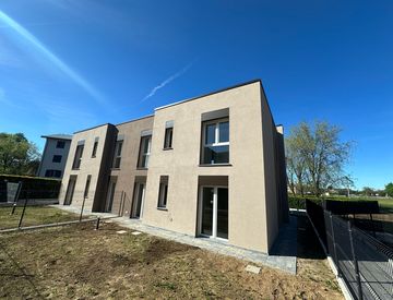 Comodo con confino svizzero, in zona residenziale e nel verde, appartamento di nuova costruzione posto al piano primo con grande terrazzo, composto da: soggiorno ampio, angolo cottura a vista, disimpegno, camera matrimoniale, due ulteriori camere, due bagni. Autorimessa singola al piano interrato. Classe energetica di progetto A3.
