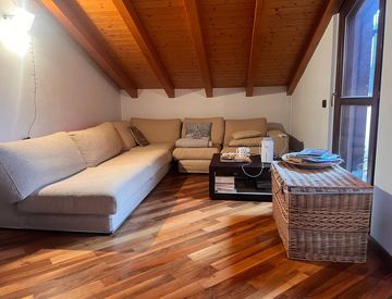 Disponibile dal 1° luglio, 3 locali con doppi servizi, cantina e box auto.