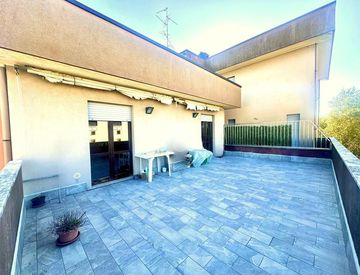 La zona notte è ben separata e composta da tre camere da letto, di cui due con accesso al secondo terrazzo, offrendo così spazi luminosi e arieggiati. Completano la zona notte due bagni, uno con piatto doccia e l'altro con vasca, ideali per soddisfare le diverse esigenze familiari