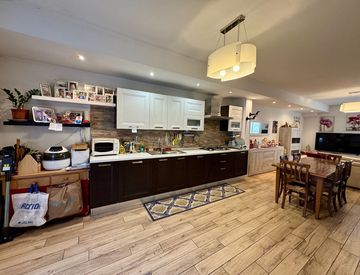 Located in the town center and conveniently located, we offer a 99 sq m three-room apartment on the ground floor, built in 1978 and completely renovated in 2019.