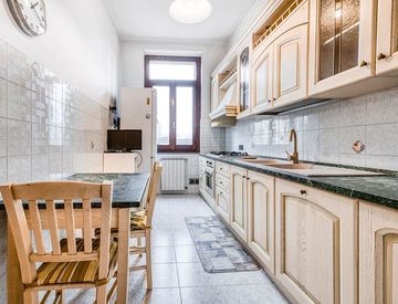 L’abitazione si distingue per una distribuzione interna funzionale: soggiorno accogliente, cucina abitabile, camera singola, camera matrimoniale e bagno completamente ristrutturato, caratterizzato da materiali moderni e finiture di qualità.