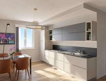 L'immobile si compone di ingresso, corridoio, luminoso soggiorno con cucina a vista, disimpegno, ampia camera matrimoniale con uscita sul balcone e bagno finestrato con doccia.