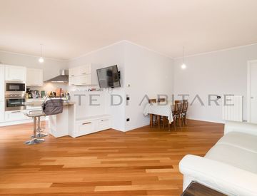 Entrando, sarai accolto da un ampio soggiorno con pavimento in parquet di alta qualità presente in tutta la casa, che si apre su una cucina a vista, ideale per chi ama intrattenere gli amici in modo informale.