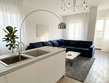 The open kitchen is functional, ideal for lovers of cooking.
