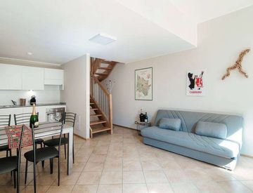 Inserito nel contesto signorile di una palazzina d'epoca l'appartamento è composto di: al piano primo, ingresso, luminosa zona giorno con cucina a vista, camera da letto matrimoniale disimpegno e un bagno; una comoda scala in legno conduce al secondo piano, perfetto come zona ospiti o relax, dove troviamo un ampio disimpegno con divano letto, un bagno e una camera da letto.