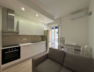 Il soggiorno luminoso e gradevole si affaccia su un balcone perfetto per godere di momenti di relax all'aria aperta. La cucina a vista è completa di lavastoviglie, lavatrice, grade frigorifero e piastre ad induzione. La camera da letto è ampia e ben organizzata, con armadiatura integrata e una postazione lavoro, ideale per chi fa smart working. Il bagno è finestrato con una grande doccia, offre un tocco di eleganza e funzionalità.