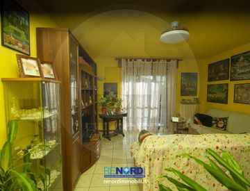 Appartamento al primo piano, servito da ascensore, composto da: ingresso, cucina abitabile con balcone, soggiorno con balcone, disimpegno notte, camera matrimoniale, cameretta e bagno con doccia. Annessi alla vendita anche il box auto con cantina posti al piano terra. La proprietà dispone anche di un sedime di terreno in uso ma in proprietà indivisa ad uso orto/posto auto.