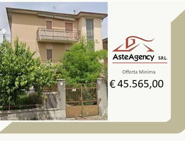 Descrizione sintetica: Appartamento al piano secondo composto da cucina, soggiorno, bagno, disimpegno, due camere da letto, due balconi, con annesse due autorimesse di mq 12,00 e 14,00. Vi è un'area comune composta da area recintata con in parte sistemazione a giardino, vano scala, cantina, W. C. piano terra, locale caldaia, legnaia e porticato