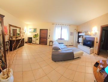 In bel contesto residenziale proponiamo appartamento con ingresso indipendente dotato di bel giardino. Posto al piano primo composto da ingresso in salone, cucina abitabile, tre camere, bagno ampio, balcone e porzione di cortile privato, completa la proposta un comodo garage. In ottimo stato d'uso con riscaldamento autonomo, attacco per stufa pellet, aria condizionata, pavimenti in gres, serramenti con vetri doppi, portoncino blindato. Ideale per...