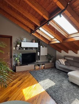 Splendida mansarda situata al secondo e ultimo piano di una palazzina moderna, realizzata nel 2005. Questo appartamento di 83 m² commerciali offre un ambiente accogliente e luminoso, con travi a vista che conferiscono un tocco di charme e calore agli spazi. Composto da tre locali ben distribuiti, un bagno e una terrazza ideale per godersi momenti di relax all'aperto.