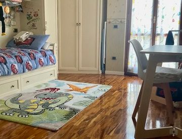 L’abitazione è impreziosita da dettagli di alta qualità, come i serramenti in legno con doppi vetri che garantiscono un ottimo isolamento termico e acustico, il pregiato parquet d’ulivo che conferisce calore ed eleganza a tutti gli ambienti, l’aria condizionata per il massimo comfort in ogni stagione e le tapparelle elettriche blindate che offrono sicurezza e praticità.
