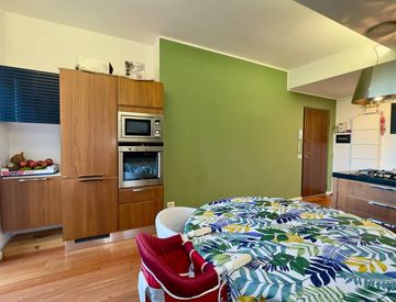 L’appartamento è stato oggetto di una ristrutturazione nel 2020, che ne ha ridisegnato i volumi in chiave contemporanea: un luminoso open space con cucina a vista e zona pranzo, pensato per la convivialità, con accesso al primo balcone e ripostiglio/lavanderia,