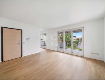L'appartamento, situato al primo piano, si apre su una luminosa zona living dove soggiorno e cucina, elegantemente separati, dialogano grazie a una terrazza esterna che li collega e li avvolge di luce naturale, creando una piacevole continuità tra interno ed esterno.