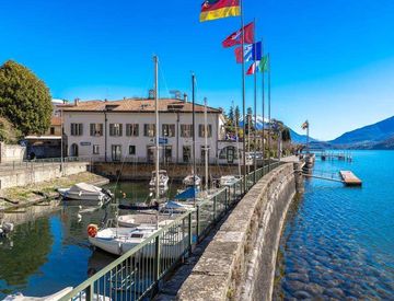 Il palazzo si trova fronte lago, a pochi passi dalla piazza principale e dalla spiaggia comunale.