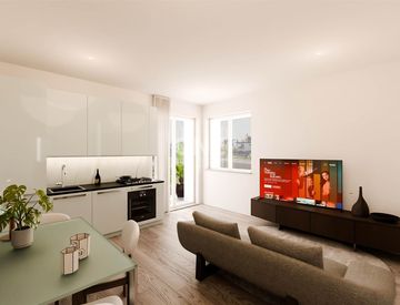 Trilocale al piano primo con ingresso nella zona living, servita da balcone.