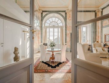 All’interno dell’imponente Villa Odescalchi Raimondi Tagliaferri, in un contesto esclusivo immerso nella quiete di un parco secolare, elegante appartamento al piano terra, arricchito da due deliziosi giardini privati.