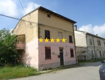 Piena proprietà di un edificio distribuito su tre piani fuori terra, composto da quattro locali, un bagno un antibagno e un disimpegno al piano terra; due locali, un bagno un ripostiglio e due disimpegni al piano primo; tre locali oltre un disimpegno e un bagno al piano secondo. E’ inoltre presente un piccolo fabbricato accessorio in corpo staccato, oltre a due mappali costituiti da terreni. - Via Villa Biscossi