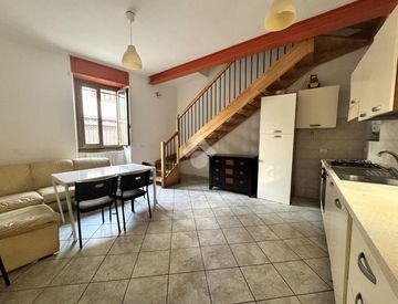 L'immobile è composto da un soggiorno con cucina a vista, creando un ambiente luminoso e accogliente.