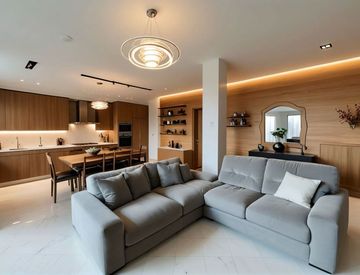 Varcando la soglia, ci si trova accolti da un grande open space che unisce armoniosamente la zona living e la cucina, creando un ambiente conviviale, luminoso e accogliente. Da qui, le ampie vetrate si aprono su un lungo terrazzo coperto da tende solari, perfetto per pranzi all’aperto, letture al tramonto o semplici momenti di pace, avvolti dal silenzio del borgo.
