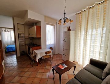 All'ingresso ci accoglie un soggiorno con cucina a vista, perfetto per momenti di relax e convivialità; proseguendo, troviamo un bagno finestrato con velux e vasca da bagno, e una spaziosa camera da letto ideale per il massimo del comfort.
