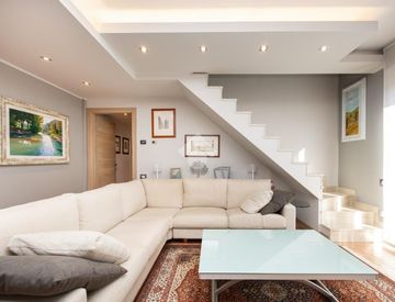 Dal soggiorno una solida scala in muratura conduce al piano superiore sottotetto, dove si sviluppano due ambienti versatili e ben distribuiti, adatti a studio, zona hobby, area relax o ulteriore spazio da personalizzare secondo le proprie esigenze. Il livello è inoltre servito da due pratici ambienti di servizio con zona lavanderia.