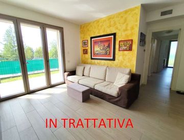 In vendita elegante trilocale al piano terreno con giardino privato in contesto residenziale recente (anno 2019) e ben curato.