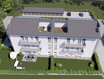 "Residence I Pioppi", 3 locali mq. 72 ca. ingresso, soggiorno con cucina a vista, 2 camere, 2 bagni, balcone mq. 7 ca. Possibilità cantina € 3.000, 00, posto auto € 5.000, 00 e box singolo € 15.000, 00. Finiture signorili. Facciata con isolamento termico a cappotto. Soglie e davanzali in Serizzo. Serramenti in PVC con doppi vetri e oscuramento garantito da avvolgibili in alluminio coibentato e motorizzati di colore grigio antracite. Porta primo ingresso...